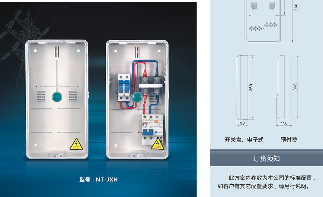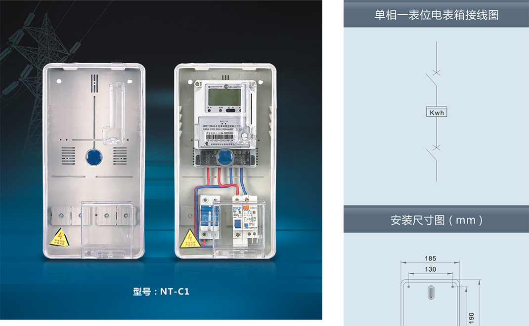 ,采用進口聚碳酸酯(PC)和阻燃ABS工程塑料制成。具有抗沖擊、抗老化、耐腐蝕、透明度高、抗紫外線、安裝方便等優(yōu)點,并且具有用電安全保護,用戶分離控制,數(shù)據(jù)采集, 防盜電等功能。產(chǎn)品適合安裝電子式、機械式、智能IC卡預付式、智能多費率式電表。南騰NT系列透明