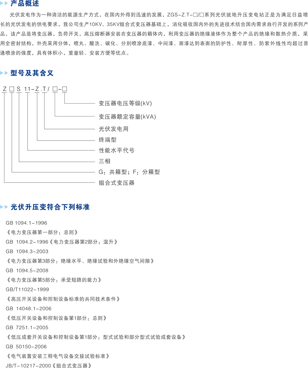 > ZGS11-Z.T系列光伏雙分裂升壓發(fā)電用箱式變壓器
